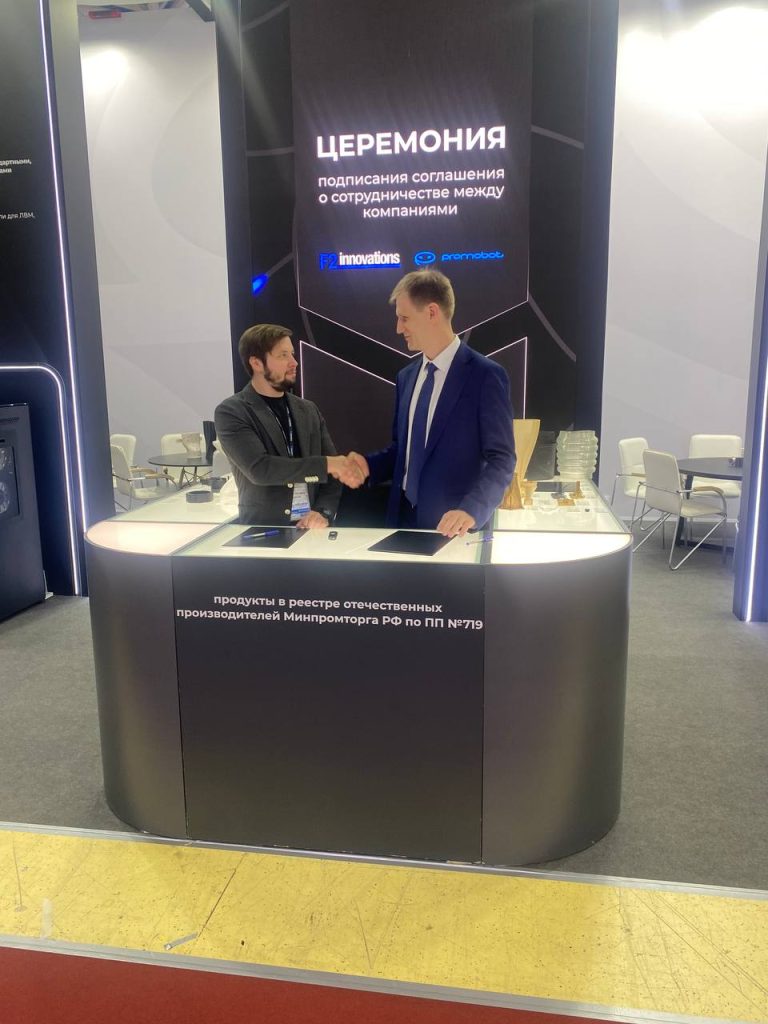 Соглашение направлено на сотрудничество в сфере внедрения робототехнических решений. Компания «Промобот», отечественный производитель робототехнических устройств, и компания «Ф2 Инновации» Российский производитель и разработчик 3D систем подписание соглашение в рамках международной выставке «Металлообработка 2025». Соглашение направлено на развитие долгосрочного сотрудничества между